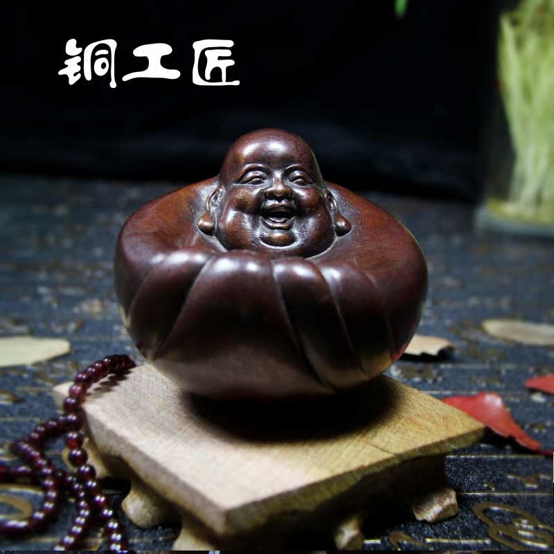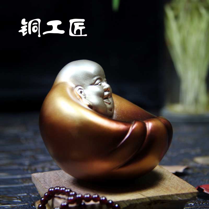 铜工匠 开光纯铜弥勒佛像金属 招财摆件家居风水摆件金属掌心佛