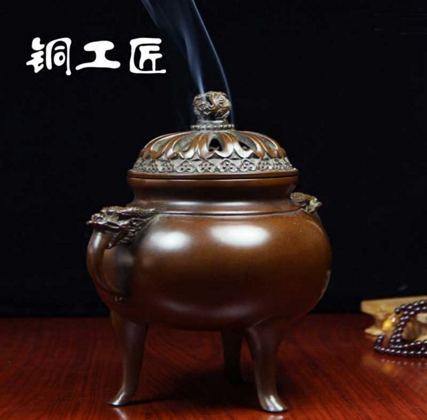 铜工匠铜香炉 纯铜龙耳三足炉 焚香炉 家居摆件香薰炉熏香炉返古